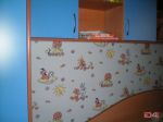 Обои Версаль в детскую выбрали именно из-за яркости красок. Боялась, что детская будет смотреться слишком аляповато, но этого не произошло. Визуально светло-голубой даже расширил комнату. Ребенок в полном восторге, так как под настроение может общаться с пчелками и медведями, собаками и кошками. Особенно порадовал тот факт, что верхняя часть рисунка из винила наклеена на основной голубой тон, поэтому когда ребенок решил отковырять носики нескольким зверушкам, получилась не сквозная дыра, так что мне осталось лишь замаскировать голубое пятнышко черным фломастером. Достоинства - клеятся обои легко и сразу, но и без недостатков не обошлось. Зачем производители сделали совмещающийся рисунок полотен в виде половинки одного малюсенького цветка, я так и не поняла. Если бы не необходимость совмещения этого незначительного элемента диаметром в 2 см, клеить было бы еще проще, да и расходность обоев была бы меньше. Клеили обои в стык, и если по центру шов не заметен, то на нижней части в районе плинтуса он начал расползаться сразу после высыхания.