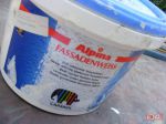 Мы не знали, какую краску брать, на водной основе, грунтовку, эмаль, но продавец убедил нас, всё-таки брать водоэмульсионную краску для использования вне помещения. Купили ведро краски Alpina Fassadenweiss, два с половиной литра, которой оказалось предостаточно, и даже осталось.