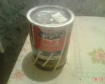Килограммовых банок не было, взяли две по 0,5 кг. Цена одной банки 60 рублей. Разбавлять Расцвет можно скипидаром, уайт-спиритом, или их смесью. Эмаль пожароопасна.