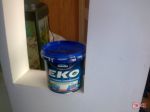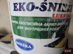 При наличии ребенка-художника до двух лет ремонт в квартире откладывали столько же времени. Обрисованные юным художником обои не подлежат отмывке. Муж предложил как вариант покраску стен декоративной краской, с которой легко смываются такие художества, тем более семейный бюджет не предусматривал глобального ремонта. После первого похода в стройсупермаркет города Симферополь «Олди» была найдена альтернатива для замены исписанных обоев на стенах - обычной окраской с тональными вариациями. Выбор пал на акриловую эмульсию ЕКО отечественного производителя ТзОВ «Снежка-Украина» (Sniezka). Эмульсия предназначена для окраски внутри жилья различных поверхностей цементных, известково-цементных стен, потолков, гипсокартонных, гипсовых, деревянных материалов, нами же была приобретена только для потолков и стен. Не будучи специалистами в расчете количества краски, порадовало то, что на каждой банке разного веса имеется расчет необходимой площади окраски, таким образом на 73 квадрата поверхности нами выбраны банки 7 и 1,4 кг, на общую окрашиваемую площадь 75,6 м2 с учетом запаса. Цвет эмульсии был выбран снежнобелый, который соответствует своему названию, так в местах окраски ниш, потолков в комнате получился идеально снежный ровный тон. Остальная площадь стен была окрашена с добавлением зеленоватого цвета этой же марки. Краски прекрасно вымешиваются вместе и не остаётся разводов, светлых пятен, получился равномерный зеленоватый тон. Кроме основных достоинств порадовало то, что после очередного художества нашего маленького маляра на стенах фломастерами, эти художества были прекрасно смыты моющим средством - не осталось размывов и следа.