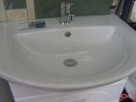 И вот уже все ремонтные работы в ванной комнате были закончены, оставалось только купить саму ванну, смесители и умывальник. Меня всегда вдохновляли умывальники со шкафчиком под ним, чтобы было много полочек и ящиков. Ведь любая хозяйка всегда найдет чем заполнить эту пустующую мебель! :-) Но муж меня огорчил, сказал, что у нас трубы сильно выпирают от стены и подняты над полом, так что придется делать короб дабы их спрятать. Вообщем умывальник пришлось покупать с пьедесталом. Мне это жутко не нравилось, но пришлось смириться. Так как большинство закупок для ремонта ванной мы делали в магазине строительных материалов "Ангара", то и умывальник решено было купить у них же. В магазине имелся очень широкий выбор польских умывальников Церсанит. Я не люблю мелкие умывальники, слишком узкие и маленькие, ведь когда умываешься, брызги воды летят в стороны. В результате мы купили понравившуюся модель умывальника Церсанит вместе с пьедесталом. И в дополнении приобрели отличный подвесной угловой шкаф этой же фирмы, который идеально вписался в интерьер ванной. Умывальник смотрится достойно, моется легко, цвет практически белоснежный. Единственное, что мне неудобно, так это стандартная высота пьедестала, для меня она низкая (хоть я и сама всего 1,63 м), неудобно умываться. Возможно потому, что на старой квартире умывальник был подвесной, крепился на стену. Но это всё это дело привычки, пока полгода пользуемся в радость. Отменное качество умывальника Церсанит гораздо превосходит его стоимость.