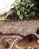 Вся жизнь крота протекает под землёй на глубине до 70 см. Многие личинки жуков зарываются в почву, где и становятся лёгкой добычей шустрого землекопа. На рисунке представлено в разрезе гнездо крота, окружённое лабиринтом ходов. Оно часто расположено под высоким холмиком (кротовиной), который сооружается для защиты от затопления.
